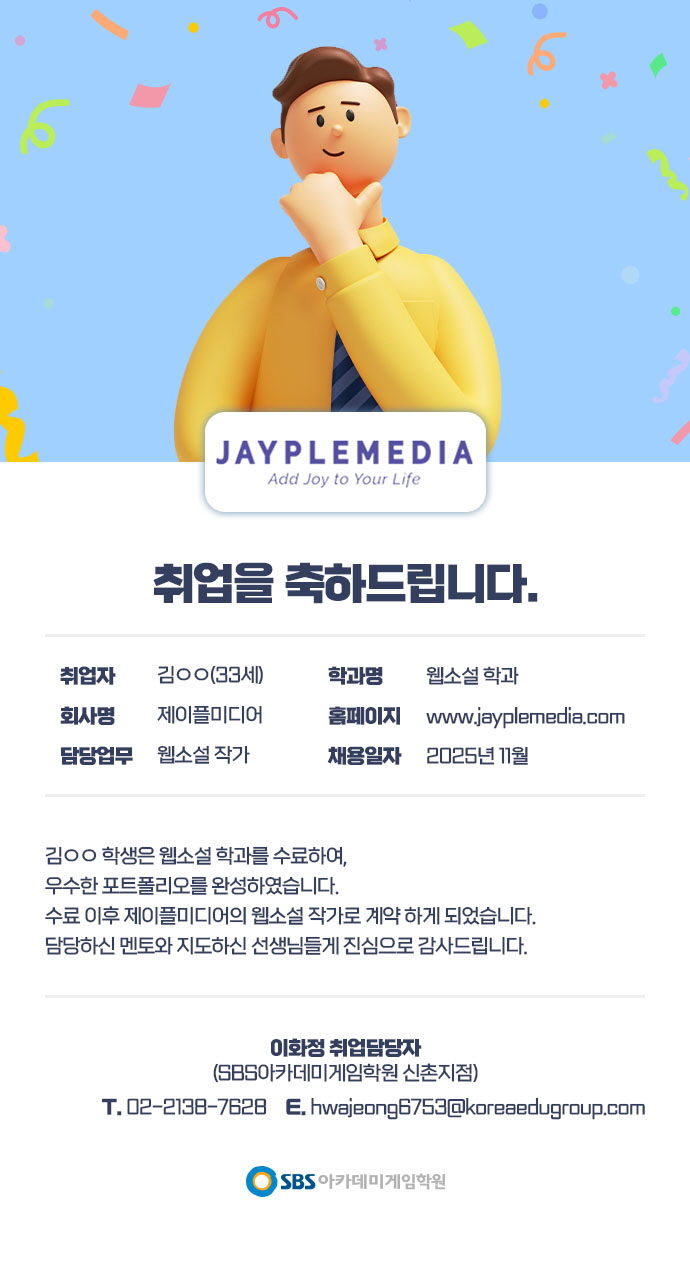 제이플미디어 - 입사를 축하합니다.